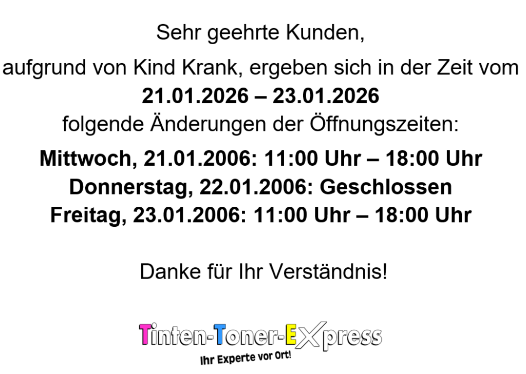 Änderung der Öffnungszeiten vom 21.01.2026 – 23.01.2026